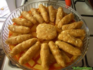 fırında tavuk köftesini yaptım ama ben içine kıyma karıştırdım daha da nefis oldu.