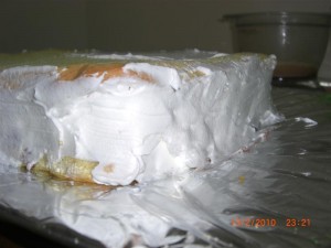 - Aynı şekilde ikinci keki de pişirin ve eğer vaktiniz varsa oda ısısına gelince ikisini de jelatine sarıp buzdolabında bir gece bekletin, vaktiniz yoksa hemen kullanabilirsiniz.